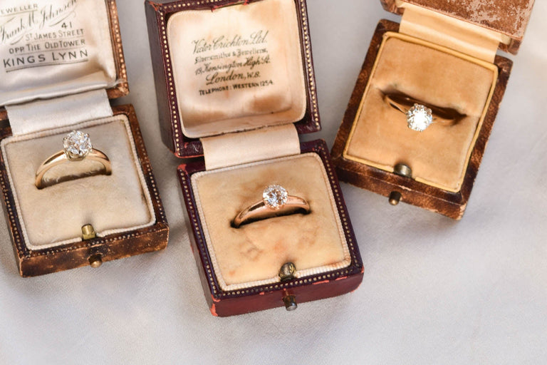 These antique diamond cuts predate modern precision cutting. They have larger facets, softer symmetry, and emit a warm fire all their own. They also often reflect light differently—in a way many collectors and lovers of vintage rings appreciate for its character (rather than uniform sparkle).