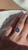 - Stone: GIA certified 2.99 carat Ceylon no heat oval sapphire. Certificate #1232607774 and .40 carats of marquise and round cut diamond accents ranging from I color, VS2-SI1 clarity
