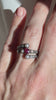 - Stones: approximately .60 carats of rose cut diamonds, ranging from L-M color, I1-I2 clarity and approximately .35 carats of ruby