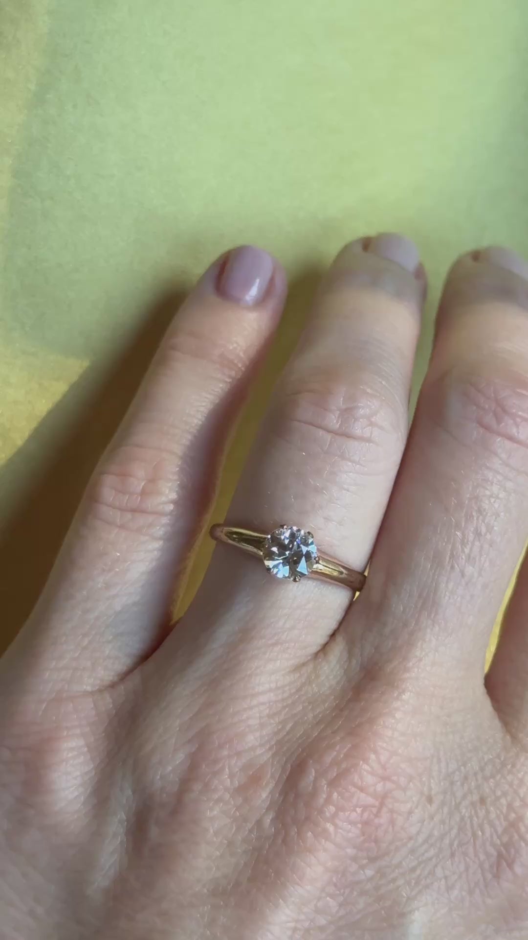 - Stone: .80 carat old European cut diamond with M color and SI1 clarity